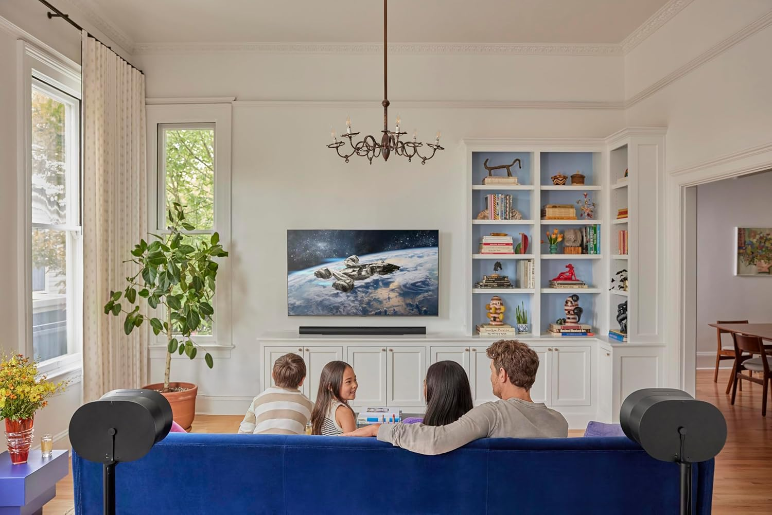 Rivelia boasts a powerful 40W omnidirectional output and 3.1 channels, complete with a wireless subwoofer that transforms this soundbar into the perfect complement for your television.